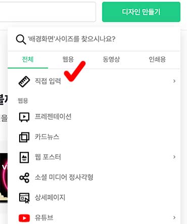 그러면 버튼 아래로 드랍되는 메뉴 중 직접 입력 메뉴를 클릭해줍니다.