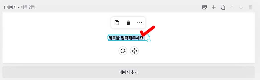 화면 중앙의 캔버스에 텍스트를 입력할 수 있게 되었습니다. 클릭을 해서 원하는 텍스트를 입력할 수 있습니다.